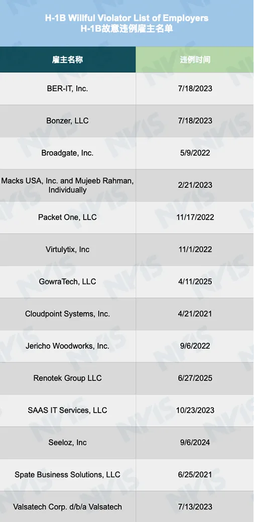 🔲 H-1B故意违例雇主名单