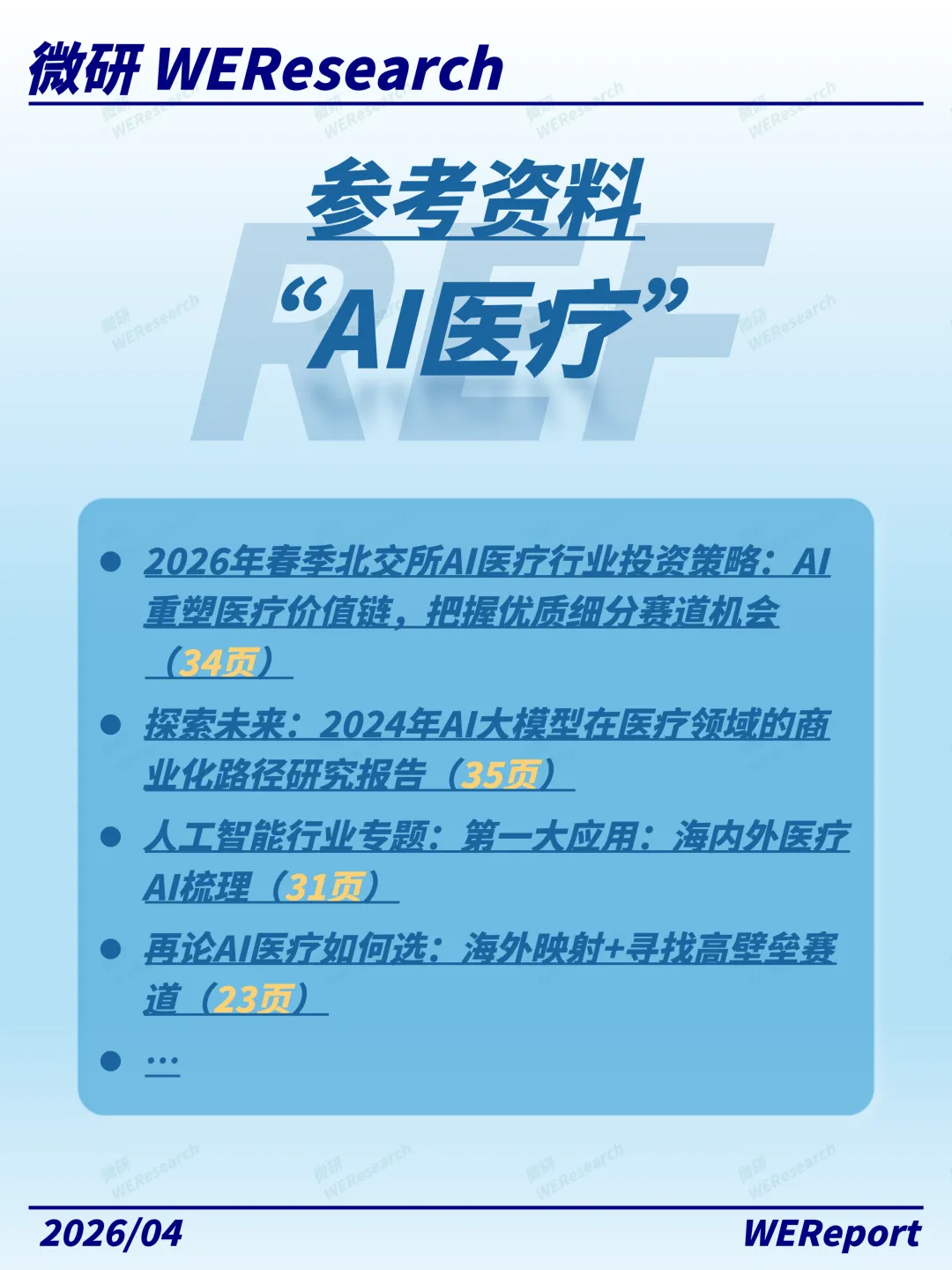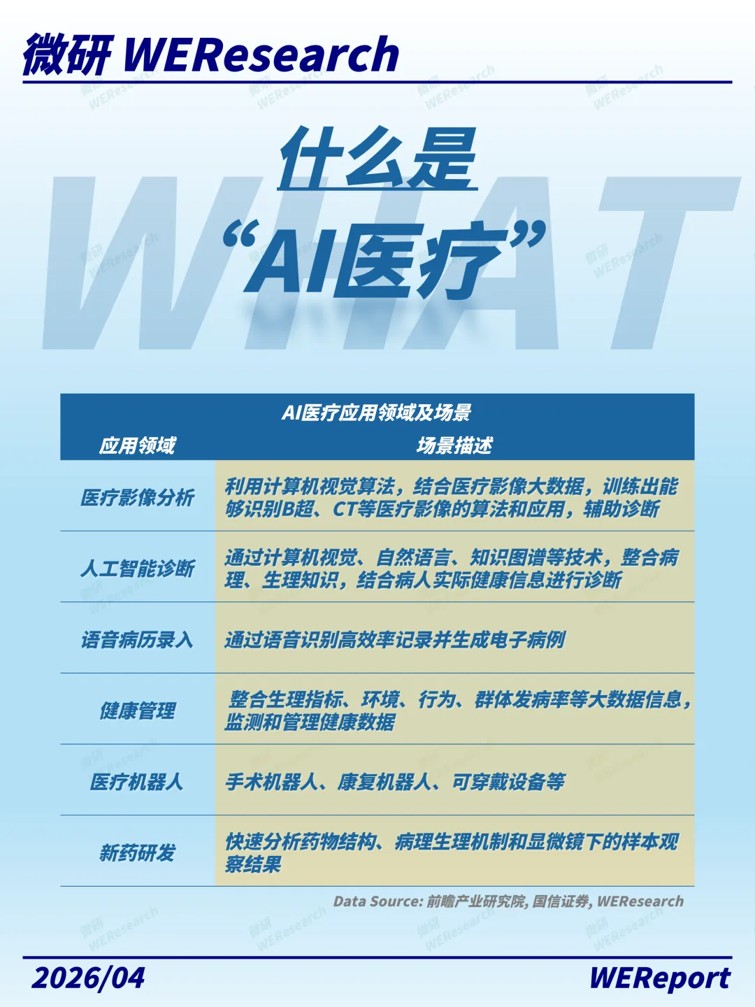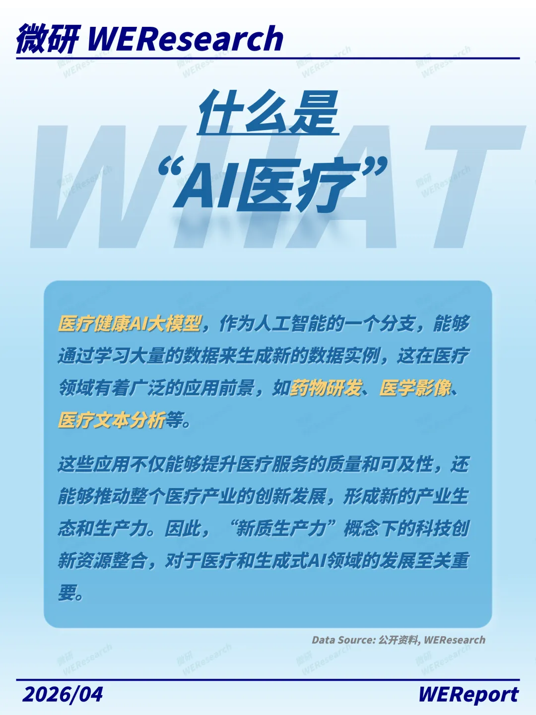 AI医疗重写游戏规则微研报告WER是由一群野生研究员合力打造的独立研究院,致力于脱离传统的买卖方视角,实现对硬科技领域热点议题的动态观测,并将研究结果开放、共享,助力知识平权。微研报告WER将始终秉持独立·客观·平权的价值观,为当下的碎片阅读时代提供一个更优质的新选择。