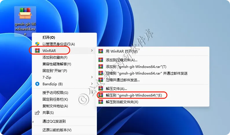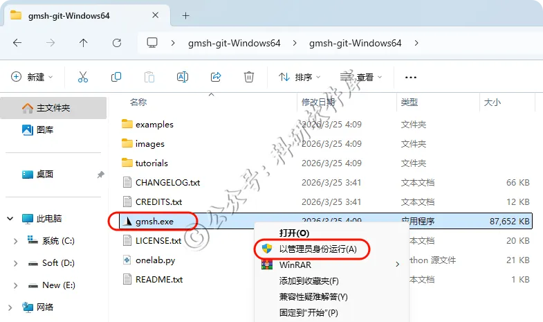 4、右键管理运行gmsh.exe主程序文件