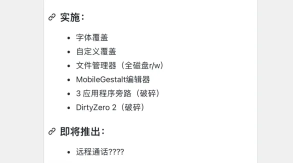 我没有合适设备测试,所以没办法展示相关功能,大概都是与之前修改工具相同,没什么特别都是互相抄代码移植然后修改,只是利用新的系统漏洞及新利用方法,所以添加新系统版本支持。