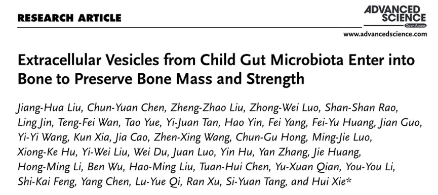 来自儿童肠道微生物群的细胞外囊泡进入骨骼,以保持骨量和强度