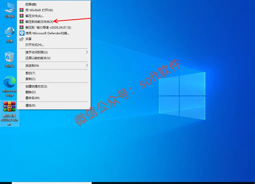 1,右键解压安装包至当前文件夹(注意,解压之前先关闭杀毒软件和window安全中心。)