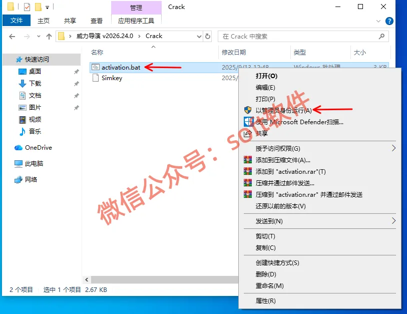 7,鼠标右键activation.bat,以管理员身份运行。窗口运行之后会自动关闭