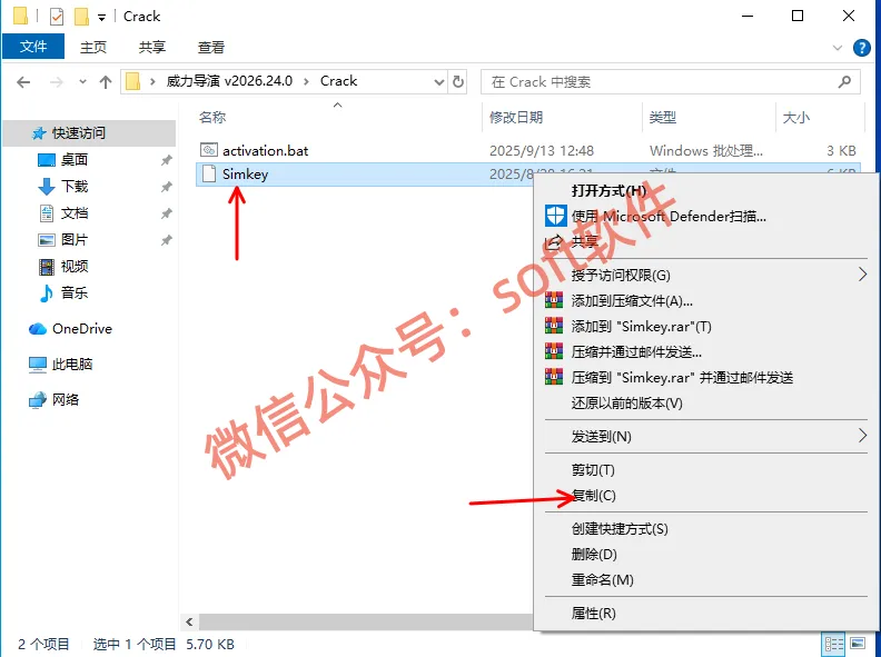 8,鼠标右键Simkey,选择复制