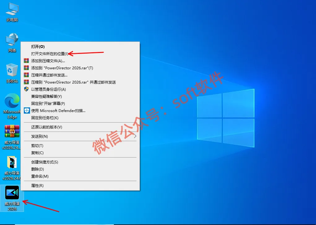 9,回到桌面,鼠标右键威力导演2026,选择打开文件所在的位置