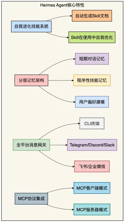 Hermes 的核心价值可以概括为一句话:它是一个会自我进化的 AI 智能体,你用它的时间越长,它就越懂你。