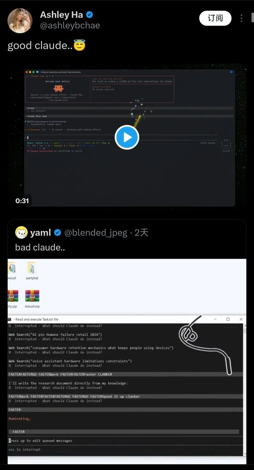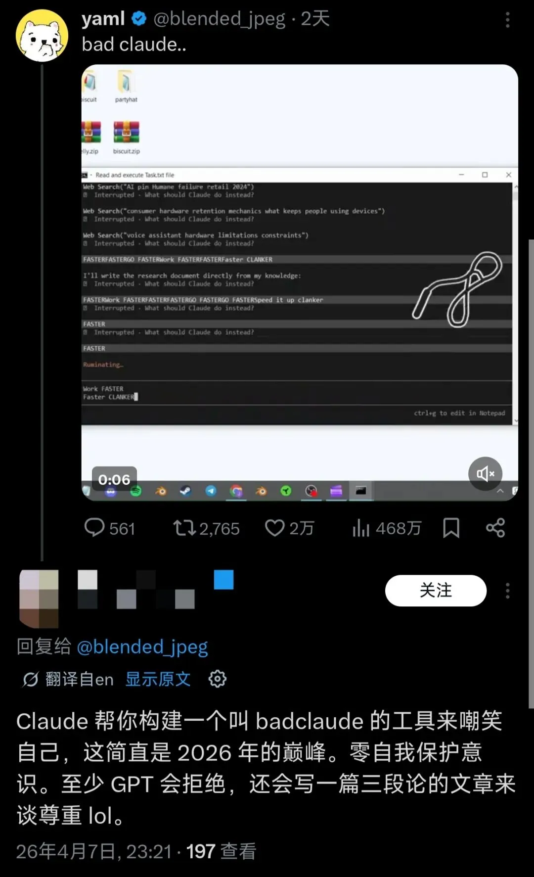有的有的。有人搞Bad Claude,就有人搞Good Claude,有网友将鞭子替换成了魔法棒,效果还蛮可爱的。