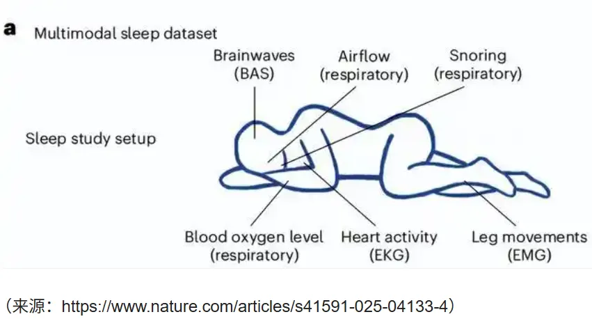 论文和斯坦福新闻稿说的“单晚睡眠”,指的是一晚多导睡眠监测。 它采的是脑电、心电、呼吸、眼动、肌电等复杂数据。