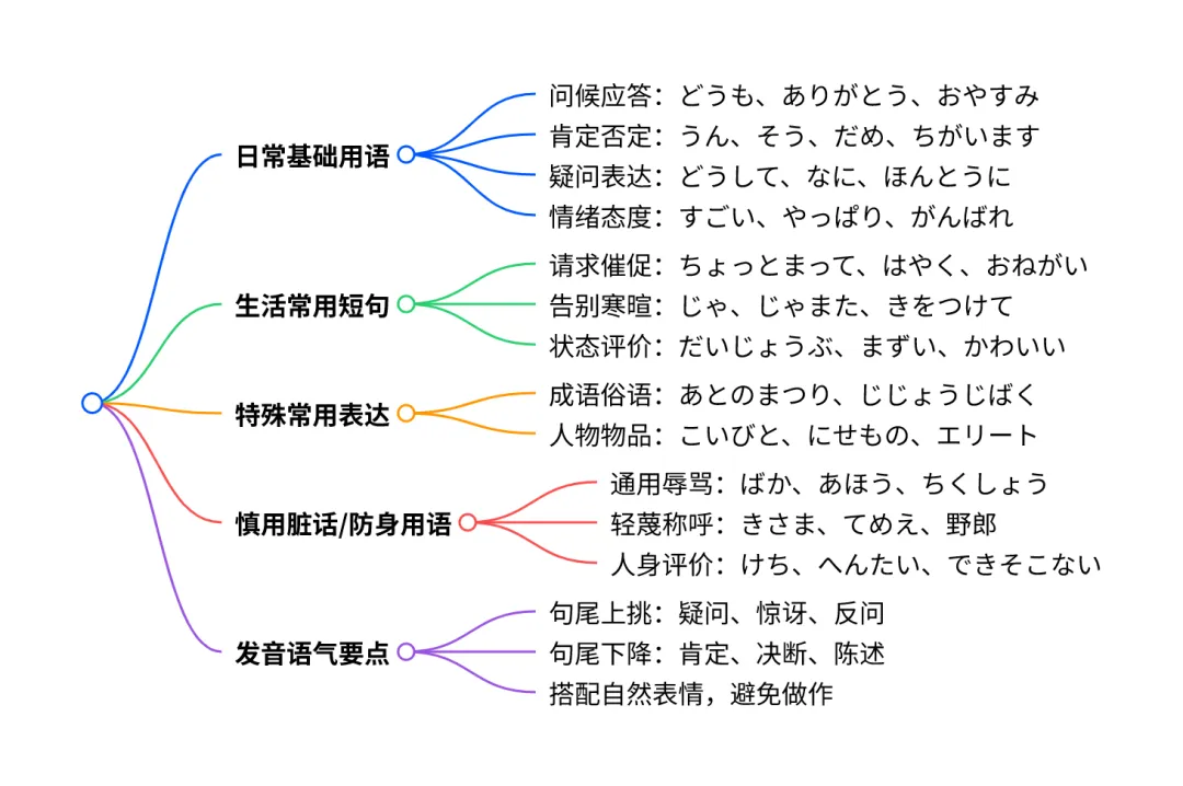 覆盖5 大类日语常用表达 收录超 150 句高频口语 明确1 类禁用场景(脏话人身攻击) 3. 关键问题与答案