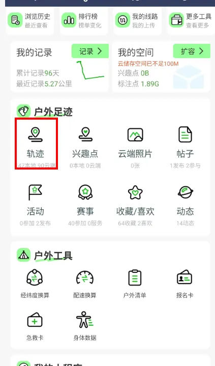 看地图:知道自己现在在哪里。 看轨迹:沿着别人走过的成熟路线前进。 录轨迹:记录你自己的行走路线,下次还可以复用或分享。