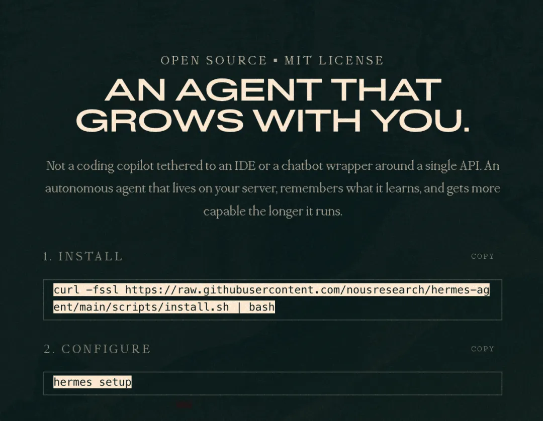 这个由 NousResearch 团队开源的项目,被不少人称为:“一个会伴随着你成长的 Agent。”
