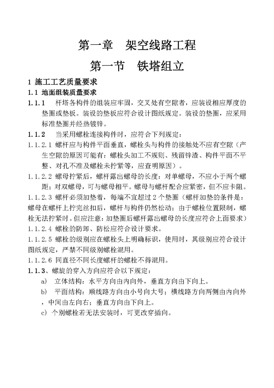1.1.1 杆塔各构件的组装应牢固,交叉处有空隙者,应装设相应厚度的垫圈或垫板。装设的垫板应符合设计图纸规定。装设的垫圈,应采用标准垫圈并经热镀锌。