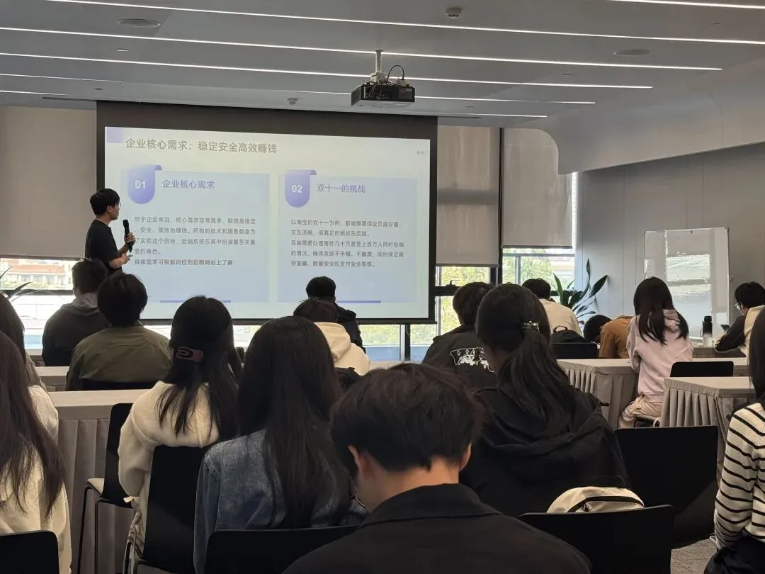 展厅参观结束后,师生们一同前往企业培训教室,参与了由企业精心筹备的软件研发全流程专题讲座。六场主题分享均由深耕行业一线的在职工程师主讲,讲座以实际项目案例为支撑,既有专业深度,又具备极强的实践指导意义。在前端开发板块,工程师们聚焦技术演进脉络与现代框架应用逻辑,深入解析了用户界面的核心实现原理;后端开发板块则围绕服务器端架构设计、数据库管理及 API 开发等核心模块展开系统讲解;产品经理板块详细阐述了产品从需求分析、原型设计到上线运维的全周期管理逻辑;软件测试板块介绍了测试流程规范、核心测试方法以及软件质量保障体系的构建路径;团队管理建设板块分享了技术团队协作模式与项目管理的实操经验;算法工程师板块中,工程师结合佳都科技在智慧交通、AI 识别领域的实际项目,讲解了算法设计的核心逻辑,还分享了算法在解决交通流量预测、人脸识别准确率提升等实际问题中的应用经验,让同学们理解算法如何为产品功能与业务效率赋能;UI 设计板块则解读了用户体验设计与界面美学相融合的实践思路。讲座间隙,同学们围绕专业技术应用、岗位能力要求等核心问题,与技术专家展开了深入交流,进一步明晰了 IT 行业各岗位职责与所需的能力素养。