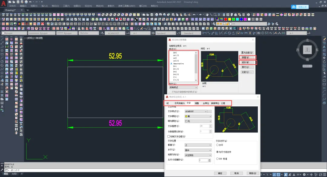 输入“LA”图层管理设置好图层颜色及线型等,再输入“D”标注样式设置好标注样式