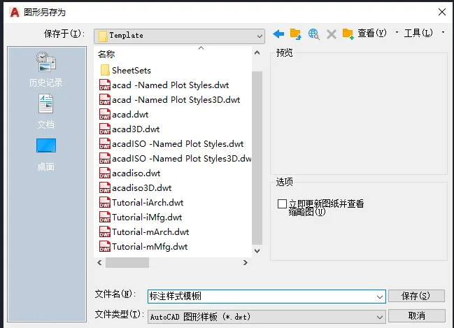 设置好后,我们直接将图纸另存为“dwt”格式,然后命名(这里说明下,当设置成dwt格式后,会自动保存到template文件中,如果不是自动存到template文件中,我们可以通过CAD安装文件找到这个文件夹),点击保存。