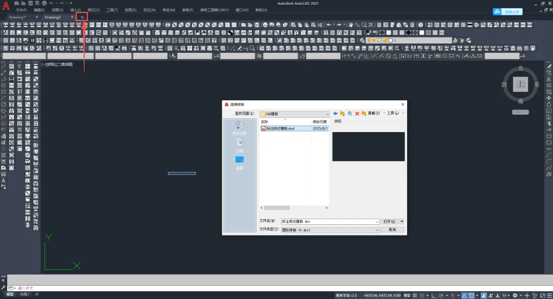 可以Ctrl+N新建图纸试一下,出现我们刚才新建的dwt格式文件模板,点击打开。