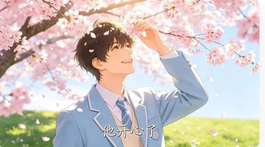 他眼眶一瞬间就泛红了,亮晶晶的泪珠在眼框里轻轻打转,顺着脸颊慢慢滑落。嘴角微微抿起又轻轻扬起,鼻尖微微发酸,连说话的声音都带着轻轻的颤抖,整个人都安静又柔软,眼底盛满了藏不住的温暖与温柔。