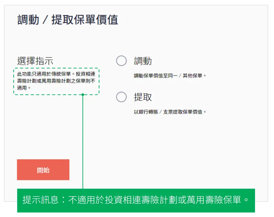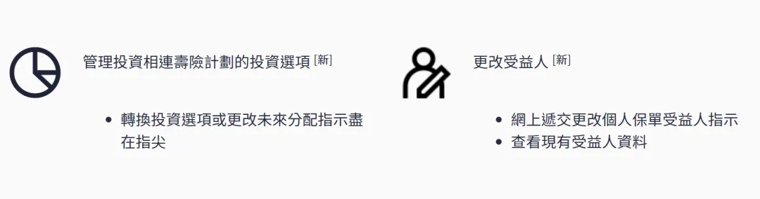 • 此功能不适用于联名/公司持有保单及于香港或澳门签发的个人持有的投资相连寿险计划或万用寿险保单。