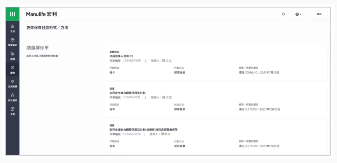 宏利Manu life - 网页端