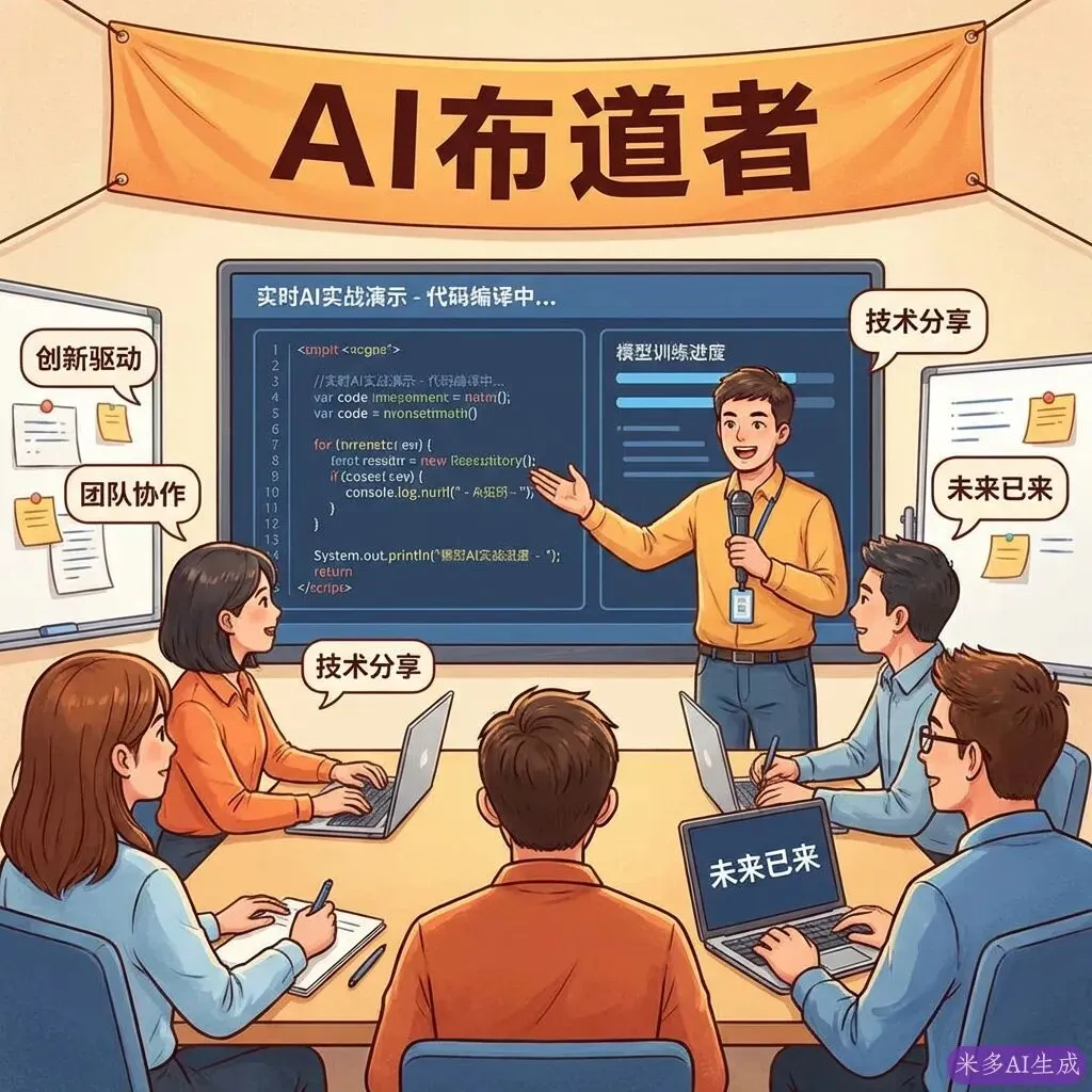 其次,他必须能解决团队的核心信任问题。布道者的价值,不是“自己懂多少AI技术”,而是“能让多少人真正用起来”。他要传递的不是“AI很强大”,而是“哪怕你是新手,用这个工具也能做出成果”。AI提效系列文章中反复强调,比单向培训更有效的,是每周一次的内部实战分享会,让每个一线员工分享“我用AI解决了什么真实问题”,这种来自同侪的实战经验,远比管理者的指令更有说服力。