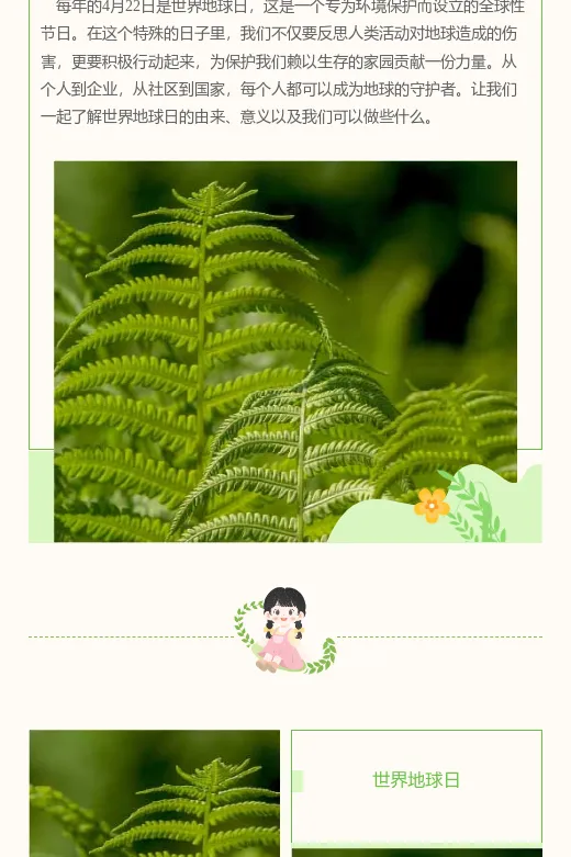 眼看世界地球日又要到了,你还在为节日推文排版头秃吗?(反转)其实用对模板,3分钟就能搞定吸睛排版。今天分享的卡通风模板,把拟人化的笑脸地球、环绕绿叶的孩童、云朵花叶等元素都打包好了,直接替换文字就能产出治愈系爆款。现在注册就能免费使用基础版,熟练后还能解锁更多高级排版功能。眼看世界地球日又要到了,你还在为节日推文排版头秃吗?(反转)其实用对模板,3分钟就能搞定吸睛排版。今天分享的卡通风模板,把拟人化的笑脸地球、环绕绿叶的孩童、云朵花叶等元素都打包好了,直接替换文字就能产出治愈系爆款。现在注册就能免费使用基础版,熟练后还能解锁更多高级排版功能。使用小墨鹰编辑器制作“小手护地球”图文模板的具体步骤: