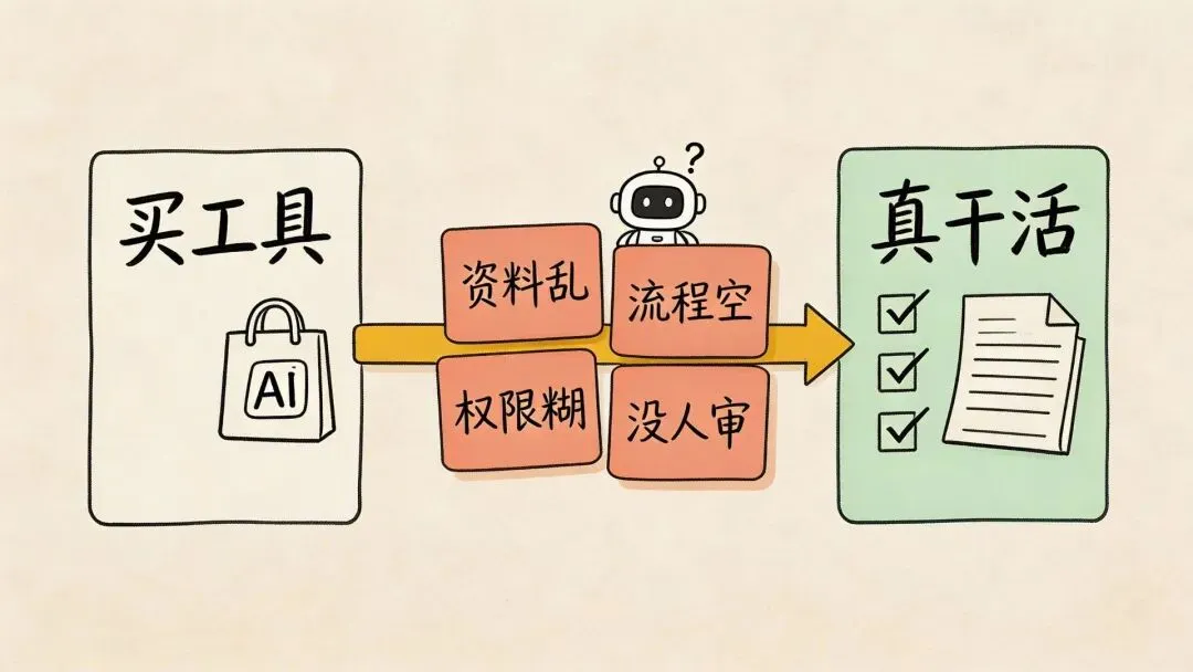 老板买了工具,员工不知道怎么用;员工试了几次,结果不稳定;不稳定之后,大家又觉得 AI 也就那样。