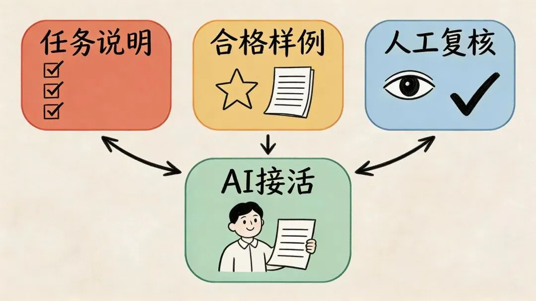 你过去靠经验、靠感觉、靠临场发挥做出来的东西,现在要慢慢变成说明、样例、流程和复核标准。