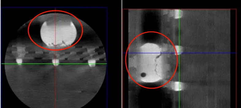 ▲热循环智能手机控制板中焊接疲劳裂纹的二维切片图
