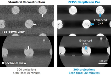蔡司 DeepRecon Pro 采用基于人工智能的重构技术,可在特别的半重复和重复样品工作流中实现高达 10倍的效率提升或优异的图像质量。