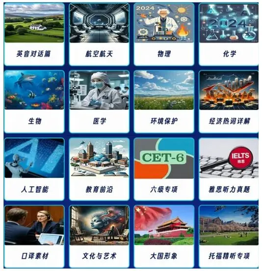 资源课程包括新闻资讯、交际英语、文化之旅、出国必备、行业英语、口语考试库、学科动态(人文社科、互联网、物理、金融财经等)多个特色专题,全部内容与学科应用紧密联系,符合学生考试、求职、能力提升的学习需要。