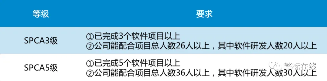 获得SPCA 3/CMMI 3证书获证一年以上,或者拥有CMMI 5证书。