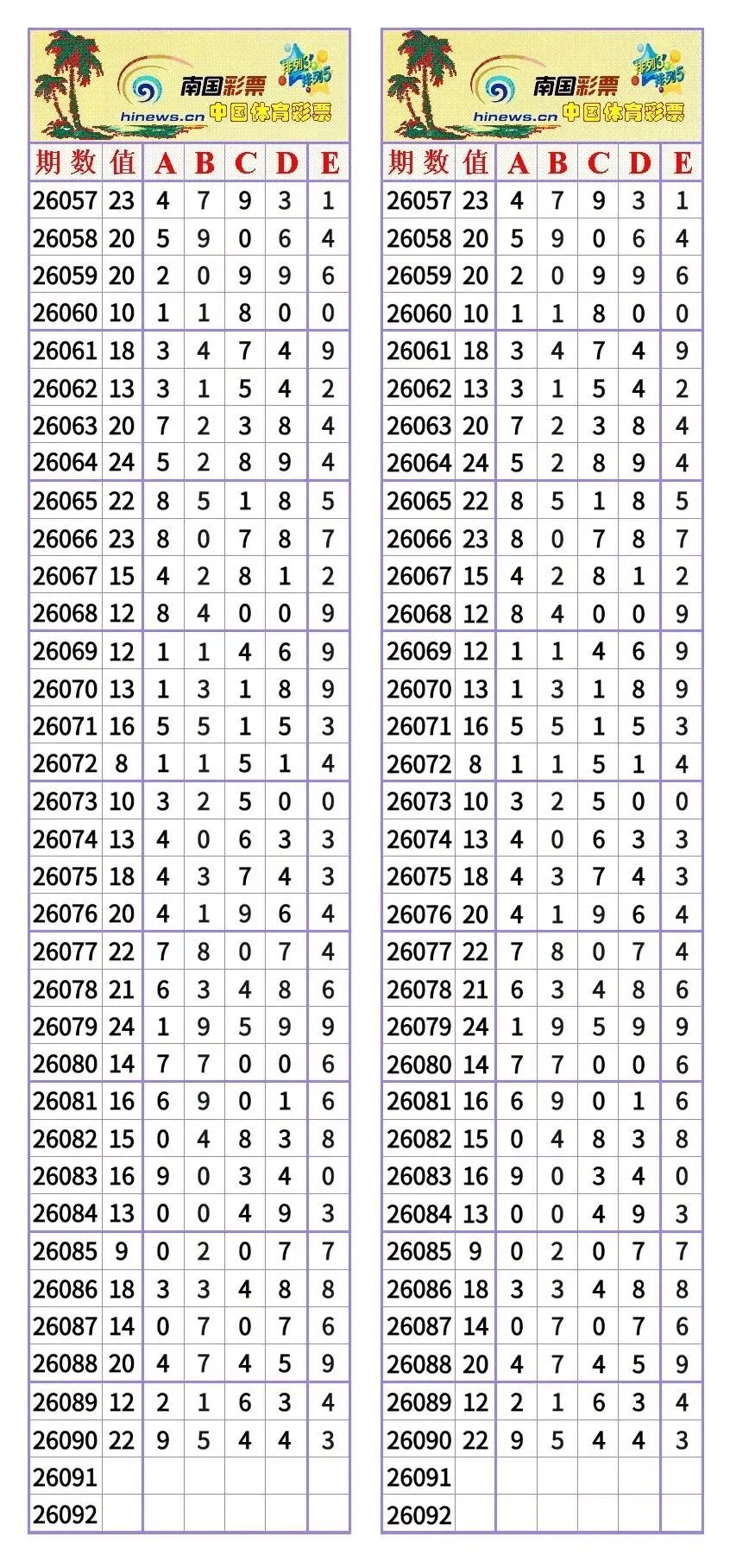 排列5第091期空模板| 上期26090期开奖号码:9544 3