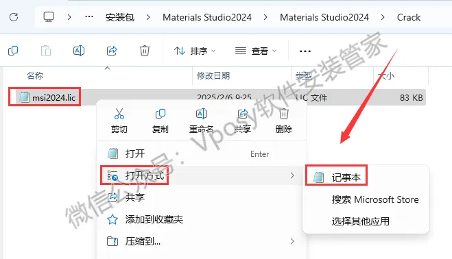 14.鼠标右击【msi2024.lic】选择【打开方式】,选择【记事本】打开。