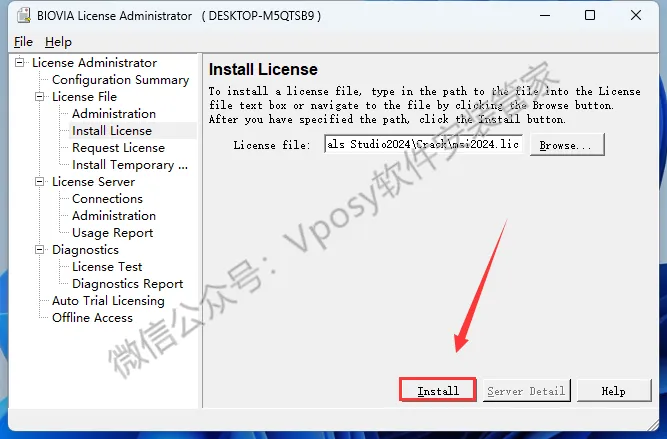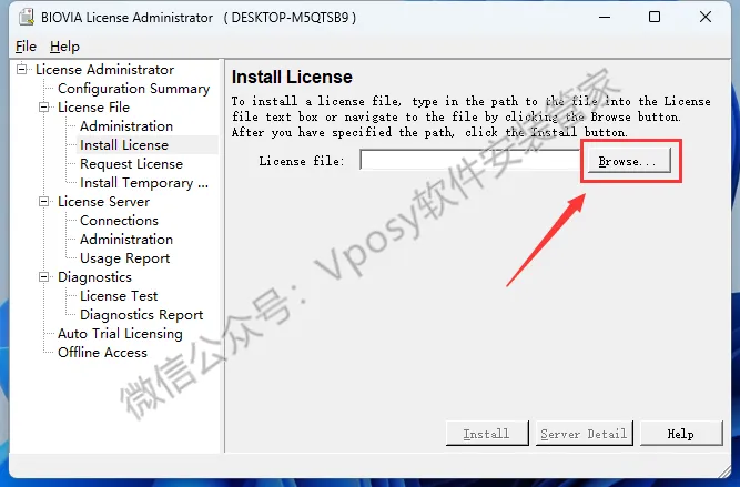 18.点击左侧的【install License】,点击【Browse】