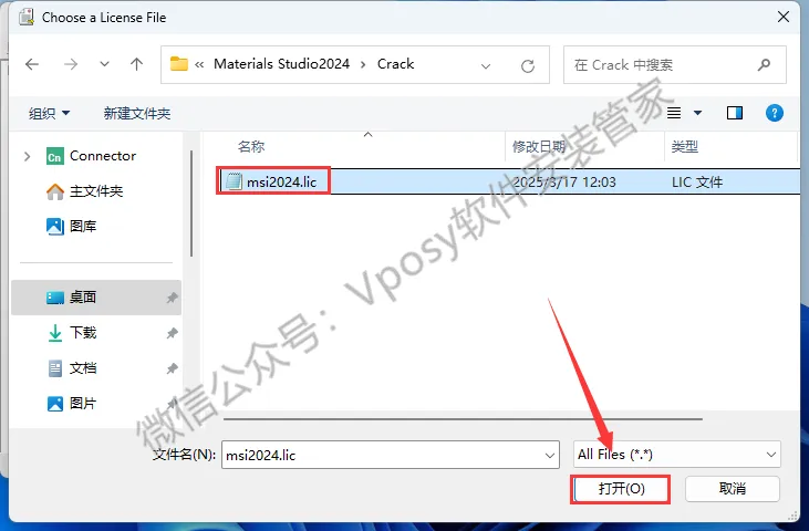 19.找到【Crack】文件夹下的【msi2023.lic】文件,再点击【打开】