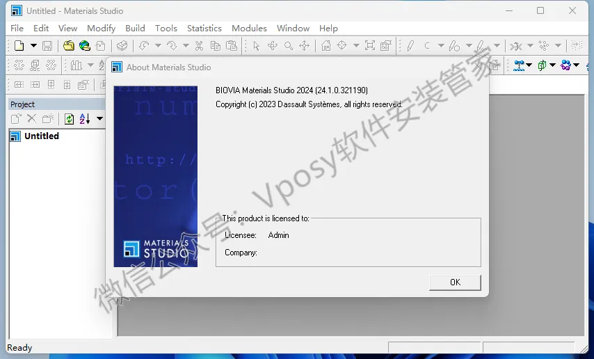 24.双击桌面【Materials Studio 2024】图标启动软件。