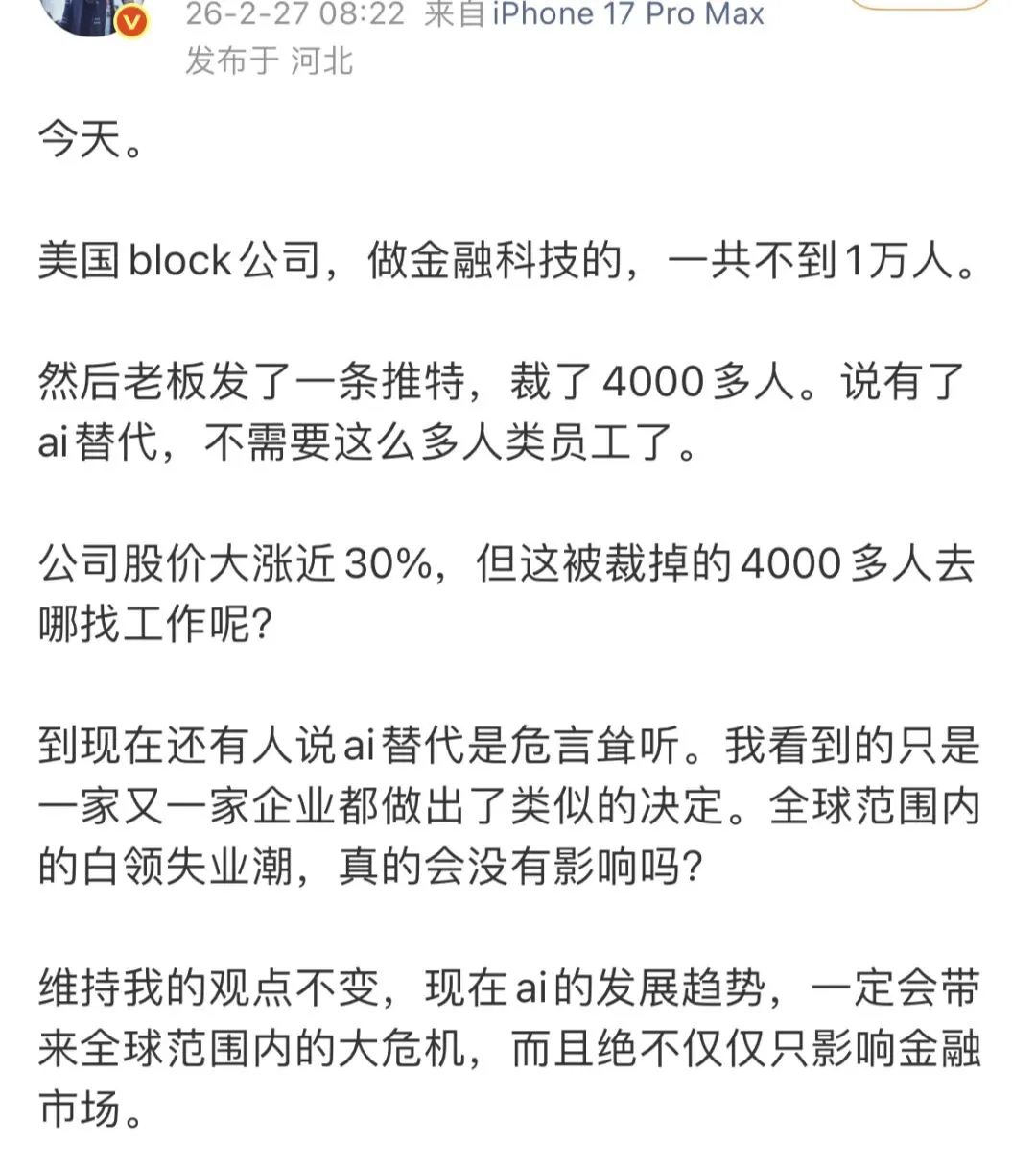 美国打工人抵制AI升级?OpenAI奥特曼家被投燃烧弹,总部也被盯上…△点击上方蓝字或下方卡片,和小柴一起防忽悠AI革命正在重塑世界的秩序,也在重构生产力关系!在这场大变革中,焦虑四处蔓延,比如前段时间大火的AI龙虾,就是一场全民焦虑的镜像,似乎所有人,都怕自己被时代甩下——有人上门安装龙虾几天赚26万!马化腾感慨:没想到能火成这样……结果,大量用户不但没拿到进入新时代大门的钥匙,更是妥妥的当了一把韭菜,安装龙虾的,卸载龙虾的赚的盆满钵满,而卖课的,卖服务器硬件和云服务的,也是过了个年——第一批养龙虾的后悔了?上门卸载OpenClaw兴起,费用涨至299……当然了,这背后也体现出,在国内,大部分人是愿意拥抱AI的,然而,美国的情况好像不太一样,调研显示,美国民间对AI似乎是一种仇视的态度。如皮尤研究中心去年发布的一份报告显示:53%美国民众认为AI侵蚀人类创造力,仅10%持积极态度。昆尼皮亚克大学2026年3月民调显示,76%美国人对AI缺乏信任,55%认为其弊大于利,超80%担忧AI发展失控。而这背后是,因为AI正让大量美国人失业,数据显示,美国就业市场2023年以来,客服、金融分析等标准化岗位被AI替代率超80%。此外,美国科技巨头们裁员的新闻,更是排着队上热搜,数据显示,2026年第一季度,美国科技企业裁减超5.2万个岗位,其中3月单月裁员1.87万人,同比激增40%。Block、Meta、亚马逊等巨头公开将裁员,如Block一次性裁撤4000名员工……而在就业机会被抢占之外,AI也开始在能源方面和美国民众抢资源,比如AI需求爆发后,推高居民电价至2300元/兆瓦时,24州居民因抗议叫停640亿美元数据中心项目。除了调研数据,美国民间对AI的抗议,已经走上街头,甚至爆发恶性事件。比如4月11日凌晨,一名20岁向男子OpenAI奥特曼住宅投掷燃烧弹,燃烧装置落在住宅大门附近后自行熄灭。约55分钟后,同一嫌疑人在OpenAI总部大楼外公开扬言要烧毁整栋建筑。警方赶赴现场后,通过体貌特征比对确认其为住宅袭击者,当场将其拘留。据媒体报道,该纵火者可能持有强烈的反AI观点,认为AI会导致人类灭绝。事件发生后,OpenAI发布简短声明,感谢旧金山警方的快速响应,强调无人受伤,公司正配合执法部门调查,并提醒员工加强出入管理。奥特曼本人也疑似发文回应,「今天过得很艰难,我思考得不是最清楚的时候。」此外,他还分享了一张家庭照片,并配文,我爱我的家人胜过一切。「这次公开照片,希望能阻止下一个向我家投掷危险物品的人——无论他们对我有何种看法。他还在文章中表示,几天前一篇针对我的激进文章,有人提醒我:在全民AI焦虑下,这会让我处境危险。我当时并未在意。「此刻我彻夜难眠、心绪难平,才清醒意识到:我低估了言论与舆论叙事的威力。过去几年局势极度紧张、混乱、关乎生死。我们正经历人类史上最宏大的社会变革。大众对AI的恐惧,是合理的。」奥特曼也强调,我们需要更少对立升级、更少尖锐言论、更少冲突爆发——无论是现实暴力,还是舆论对抗。希望所有人都能缓和这场AI争论的语气与对抗方式。不过,对于AI造成的失业问题,只不过是因为结构调整带来的阵痛,事实上,AI在取代一些岗位的同时,也正在创造大量的新岗位。同样以美国为例,在话务操作、保险理赔岗位减少的同时,医疗、教育等AI增强领域仅增加约9000个岗位。再比如在能源领域,未来十年,美国需新增超30万名电工才能满足人工智能与能源基础设施建设的需求。此前,黄仁勋也表示,AI不会导致大规模失业,反而正在创造新一轮就业潮,尤其在基础设施建设和技术工种领域。柴狗夫斯基©️作者 | 小柴叁号编辑|谭松温馨提示:小柴微信小店独家销售漱口水产品,只在牙科医院有售……来一单,支持一下小柴的带货之旅。柴油们下单前,可以收藏店铺,可领取优惠券……END柴狗夫斯基:科技领域TOP10公众号,宇宙第二反套路、防忽悠、揭秘商业和资本真相的镰刀粉碎机。曾获得网易号“最具影响力”称号;并荣获上海经济和信息化委员会颁发的“最佳组织奖”;获得一点资讯“一点号年度黑马作者”称号,文章在各大平台频频斩获10W+。温馨提示,防失联及看更多面的小柴,就在上方按钮中:▼推荐阅读100W+文章▼下拉查看小柴百万+文章遭小罐茶巨额索赔,有了结果TikTok难民涌入小红书,他们晒了自己收入价格崩盘上热搜,Labubu第一批黄牛破产了…农夫山泉红色尖叫二手平台走红!溢价超Labubu…贾跃亭新车被指抄袭国产品牌魅族前高管评王腾被辞:不知道这个人辛巴回应被带走调查:一觉醒来哥的房又塌了?桃李广告语被骂,这届年轻人矫情还是企业爱说教?良品铺子花生上树!AI降本增笑第一案例诞生了王腾辟谣窃取出售机密!…魏建军亲自回应贾跃亭新车:用散件组装的,长城没参与……何小鹏晒和雷军聊天记录!网友调侃乘龙卡车发内涵海报“活着才有资格谈理想”!张铁林带货啄木鸟广告翻车!女子找工作问双休被辱骂只配跪在办公室影石老板站楼上撒钱被指践踏员工尊严!宗泽后回应“三个孩子是叔叔的”并喊话宗馥莉诈骗包裹收割,给骗子递刀的韵达该被查了一个店长一天套现近万,国补成了谁的钱袋子?巨头强制员工双休,996的丧钟敲响了女主播被指擦边!网友:你们活在清朝对手机喊太贵降两千,年轻人驯化大数据杀熟爱康国宾:为1.5万员工尊严,起诉患癌女律师果汁被霸占现场收费转让!胖东来