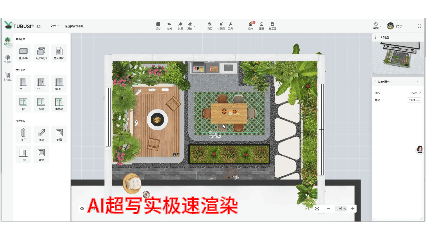 1、零基础极速上手:纯拖拽式素材操作,无需专业功底,小白也能快速搭建庭院方案,搭配AI超写实渲染,几秒钟生成高清效果图、全景图,七大天气模式(明朗晴天、烟雨朦胧、瑞雪纷飞等)、六大光照时段(日出晨曦、落日余晖等)自由切换,效果媲美实景。
