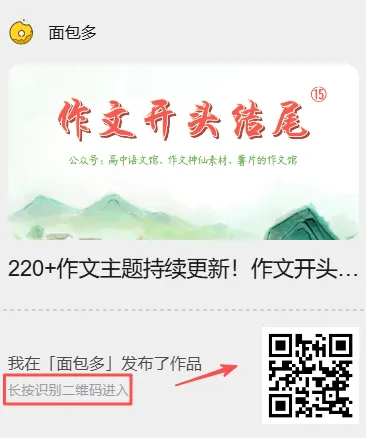 作文神仙结构模板,200+作文主题开头结尾分论点,告别凑字数,直接抄! 高中语文干货分享平台♡今天,薯片分享作文神仙结构模板!快来学习作文开头结尾已更新至第15期(一次买断,永久更新)第15期部分正文内容作文开头结尾,200+主题的开头结尾分论点,Word版+PDF版网络产品,无需快递,一次性付费成功可永久查看。(不支持退货嘞)长按识别二维码👇👇 ✨ 文言文再难背,无非就这39页! ✨ 承包你所有的作文素材,300+页,23w+字 ✨ 2024高考语文150分满分的经验分享! ✨ 180位人物素材一句话精评点一点【在看】你一定会上岸👇