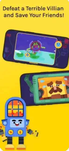它不是那种干巴巴的教学软件,而是一个完整的冒险故事:孩子先自己设计一个机器人,然后操控它去拯救被坏蛋抓走的小伙伴。