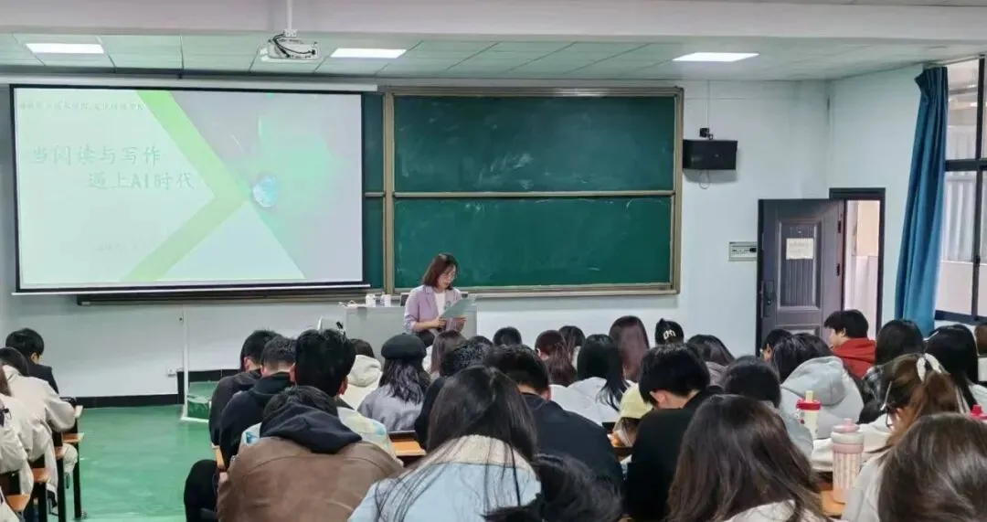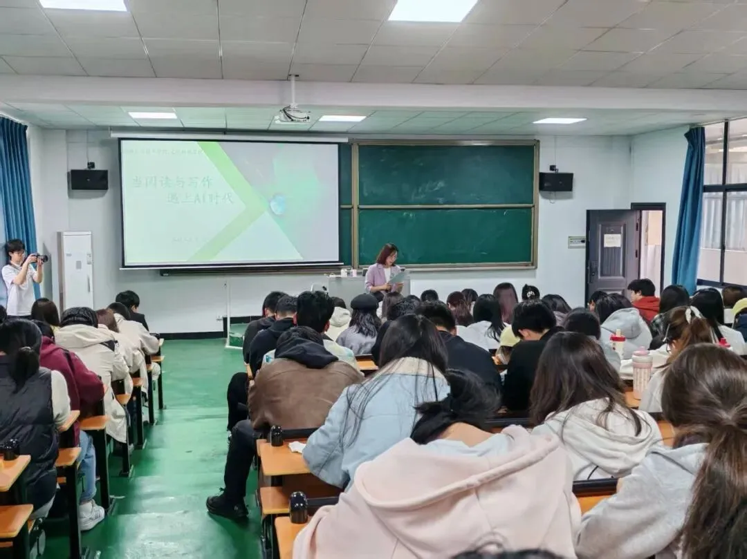 本次讲座特邀李兰老师主讲,以《当阅读与写作遇上AI时代》为题,展开一场跨越人文精神与科技未来的深度对谈。学院院长江新军亲临现场并致辞,与全体师生共同聆听这场思想盛宴,感受智慧碰撞,汲取精神力量。