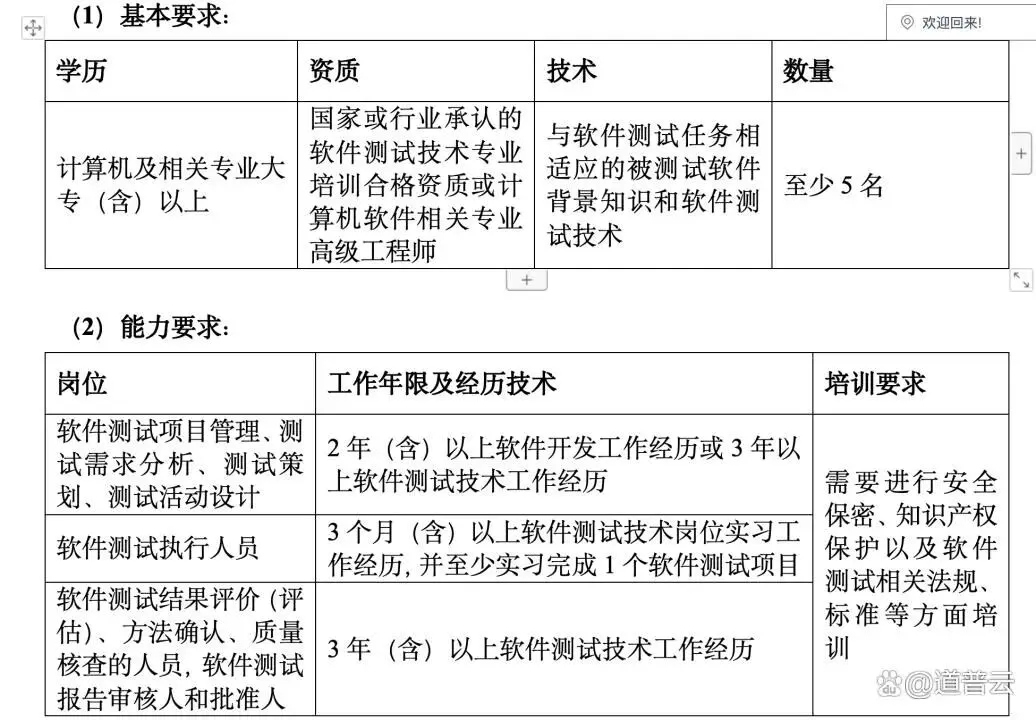 以上人员中,对授权签字人、技术负责人、以及软件测试人员的学历、经验等方面有着明确的要求,对软件检测实验室来说,对软件测试人员的要求有: