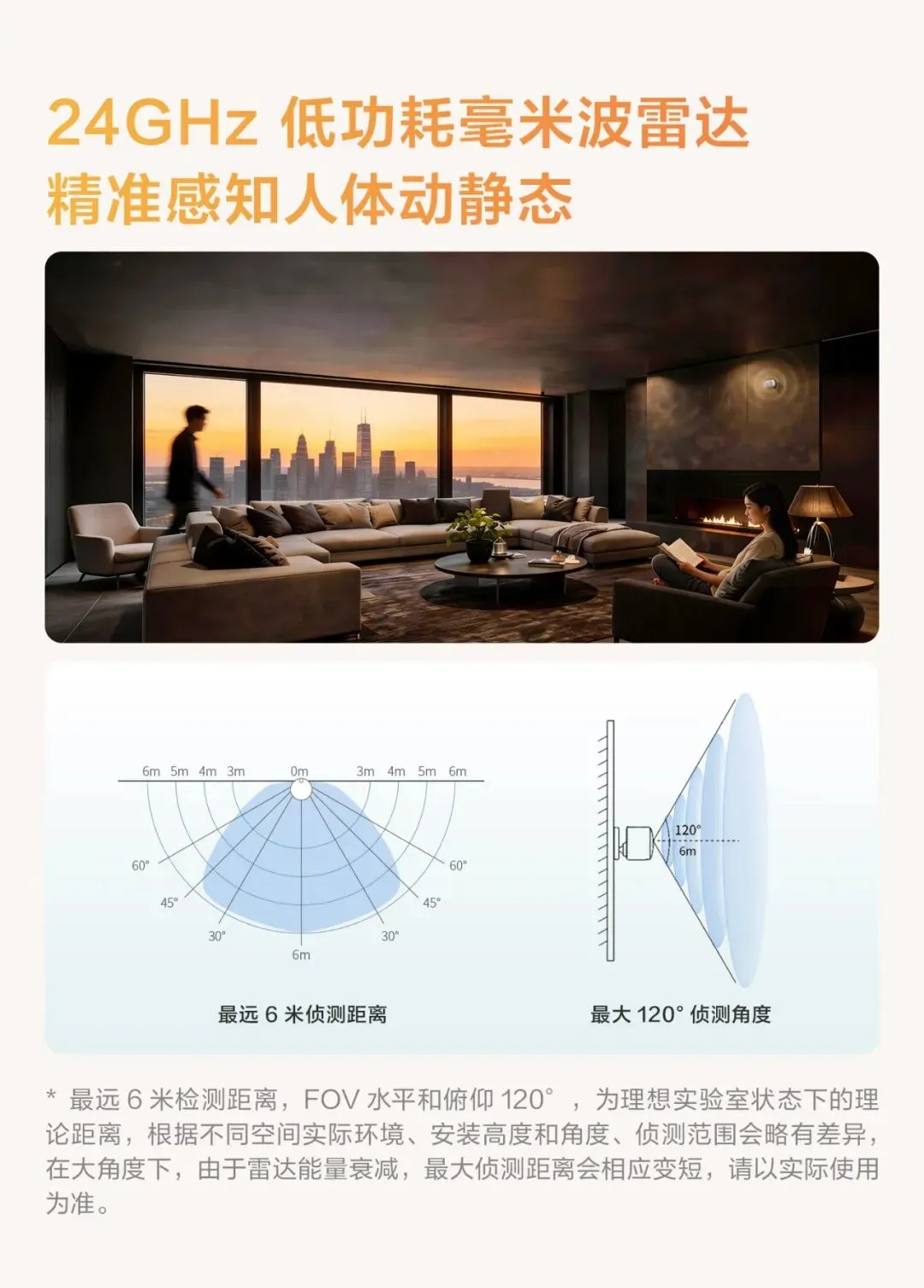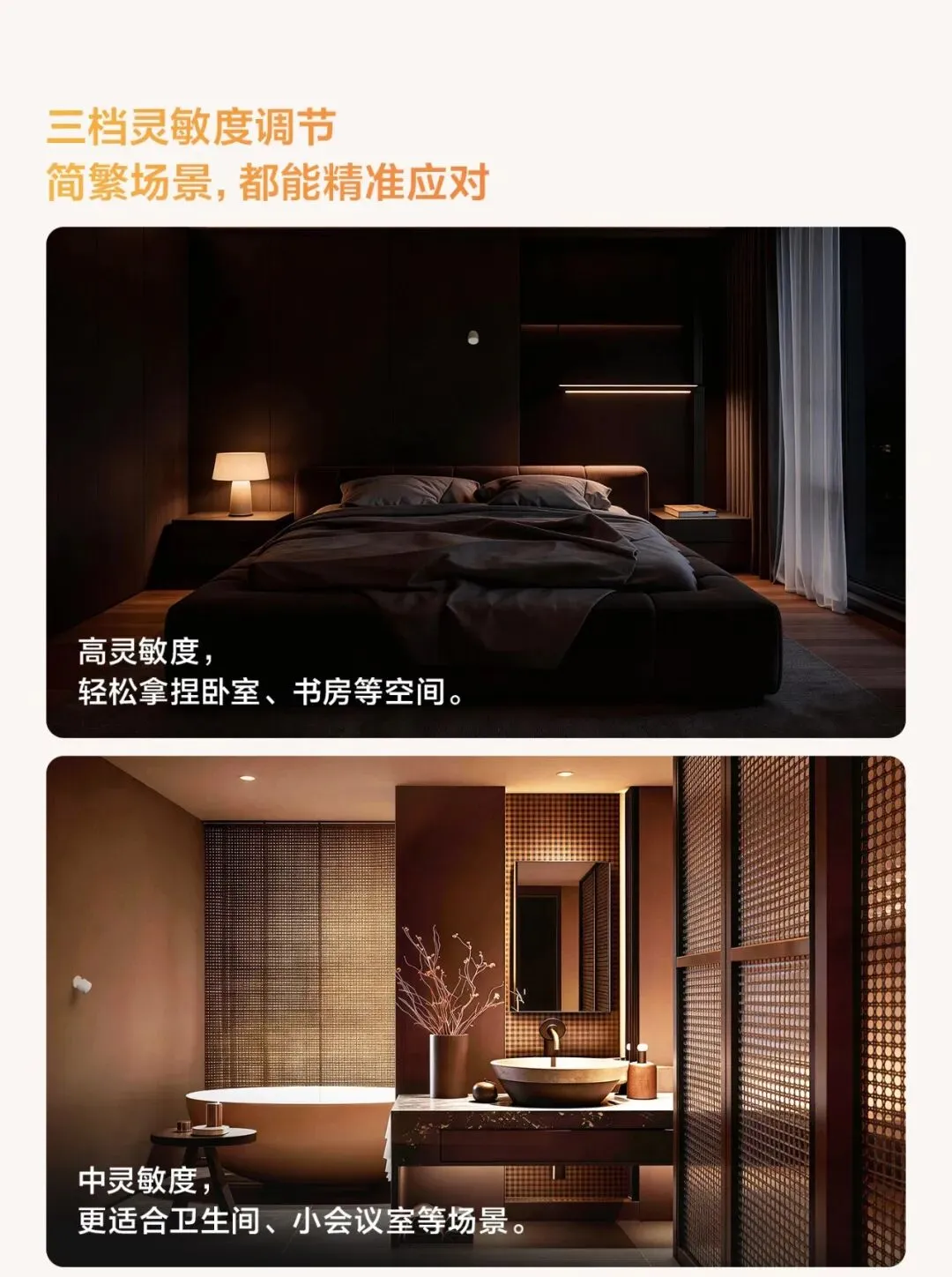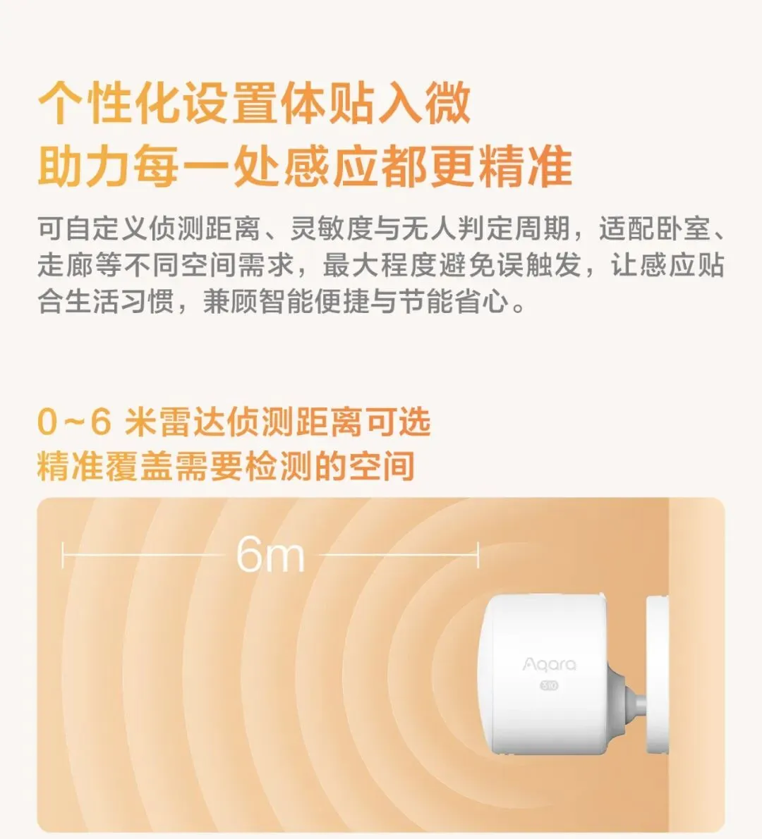 侦测距离:0~6米自由可选,精准匹配卧室、走廊、客厅等不同面积空间;