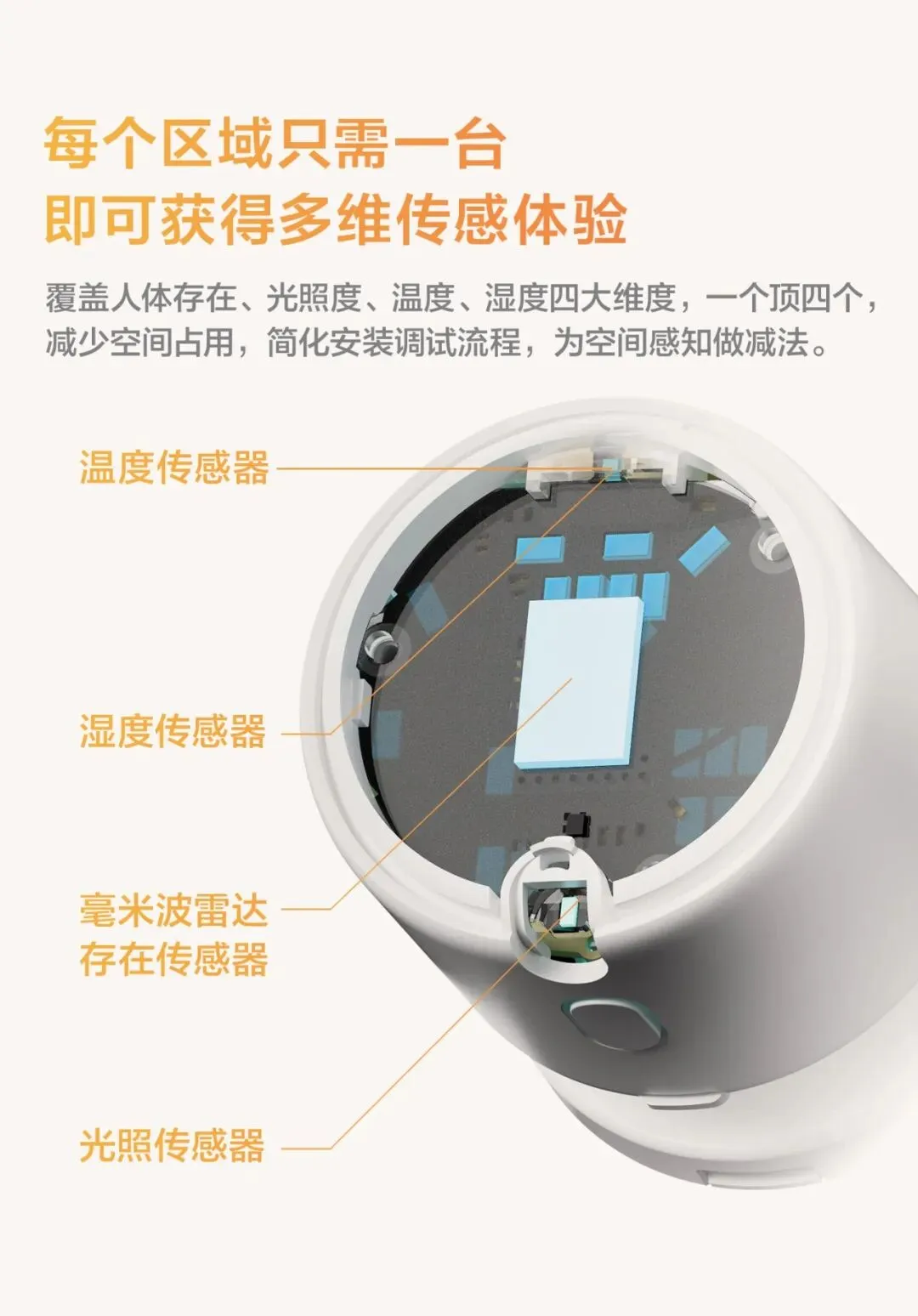 无需额外安装温湿度计或光照传感器,减少设备数量,让全屋智能更简洁、部署更高效。