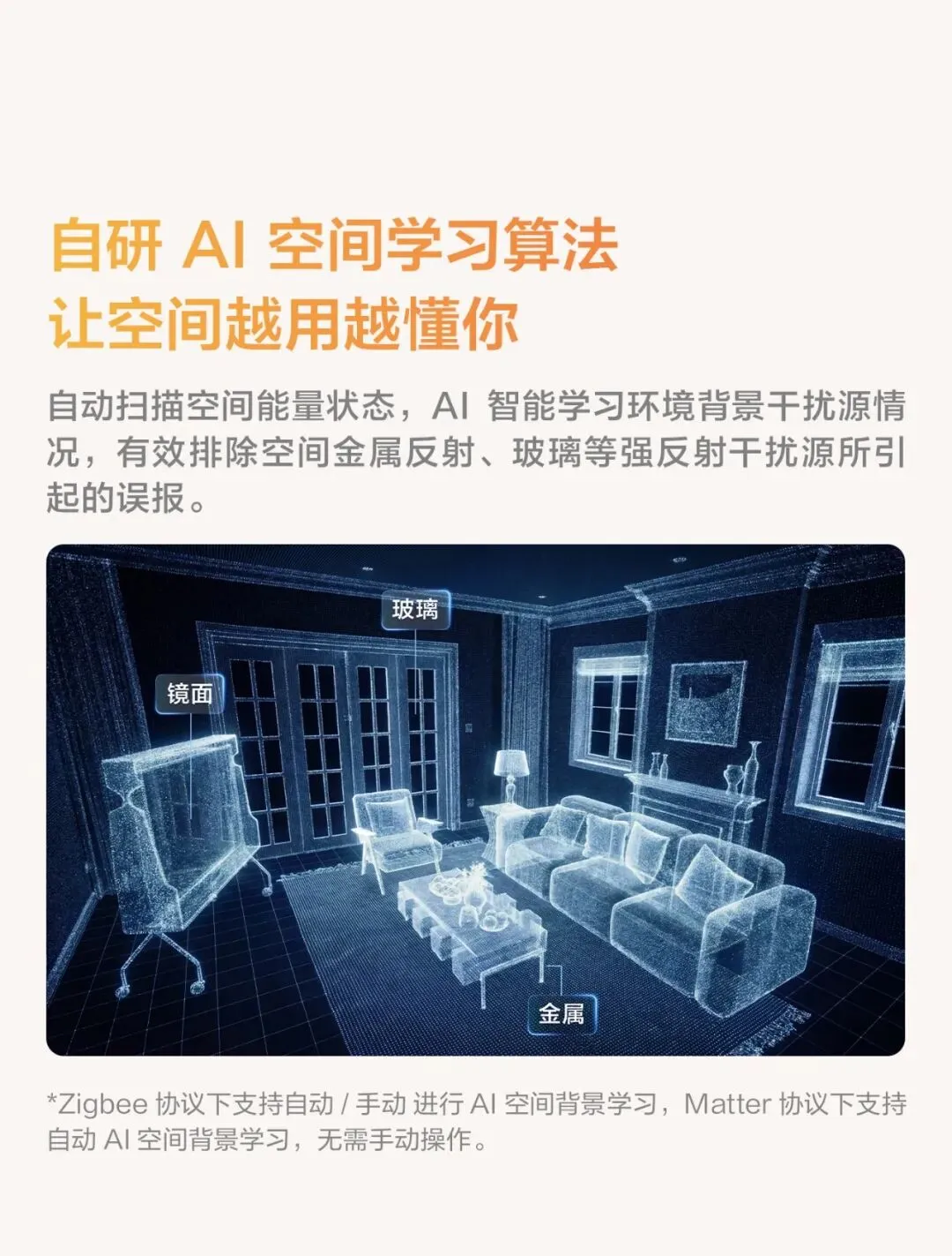 内置Aqara自研AI空间学习算法,持续优化感知表现: