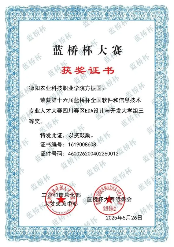 2024年全国大学生物联网设计竞赛(华为杯)全国总决赛荣获高职分赛区一等奖、全国二等奖。