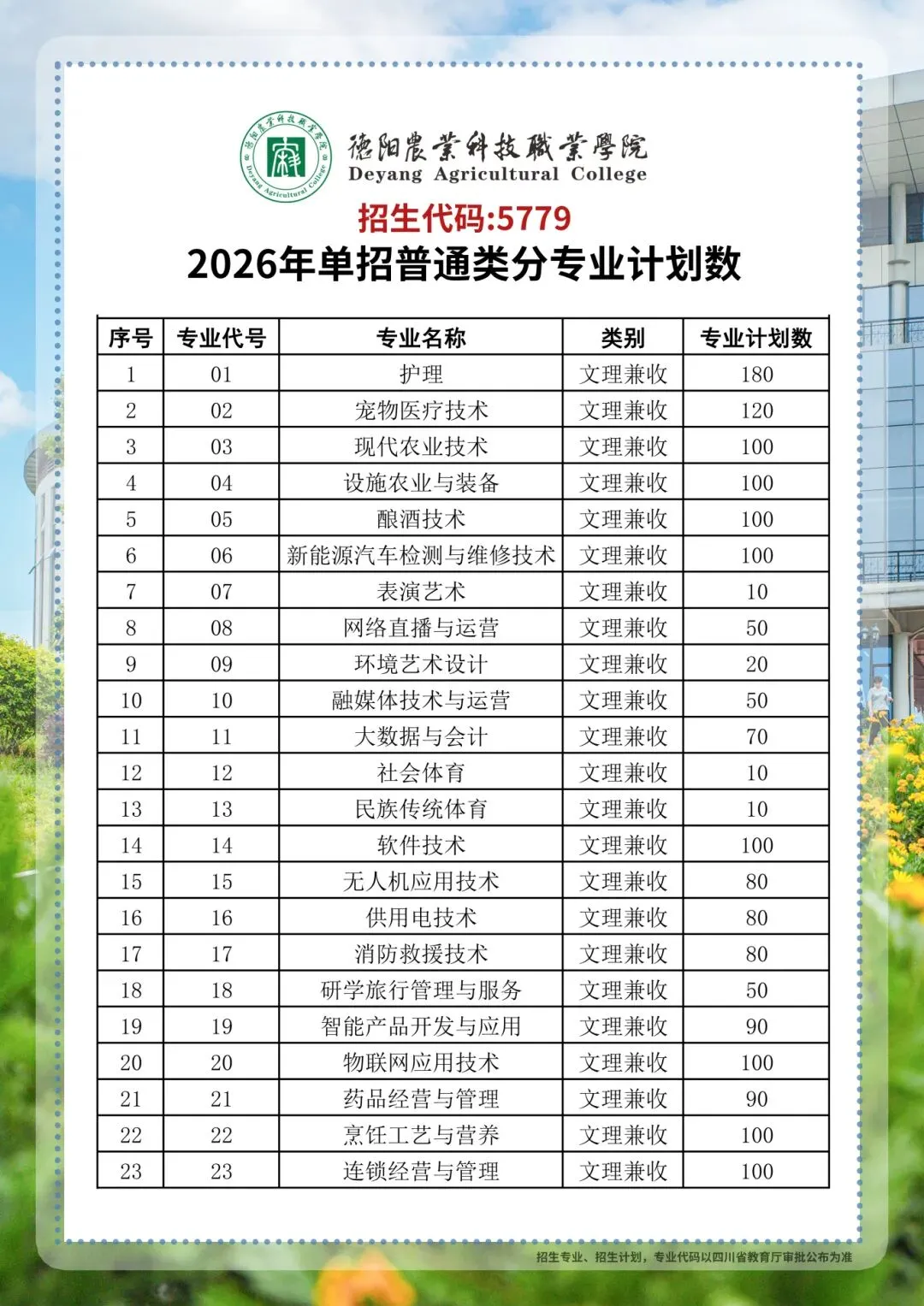 官宣!德阳农业科技职业学院2026年高职单招计划正式发布