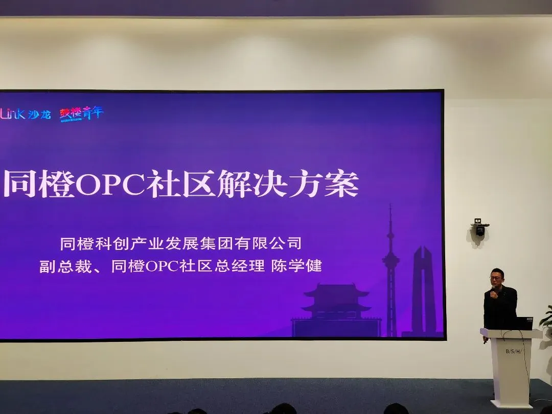 如今,“一人公司”已从概念走向现实。在鼓楼,创业者不仅能够借助各类AI工具获得赋能,还能与开放的伙伴们携手同行。鼓楼区正以“一社区一特色”的OPC社区矩阵,为创业者打造从0到1、再从1到N的全周期成长生态。同橙科创产业发展集团有限公司副总裁、同橙OPC社区总经理陈学健,在座谈中和大家分享了同橙OPC社区解决方案。