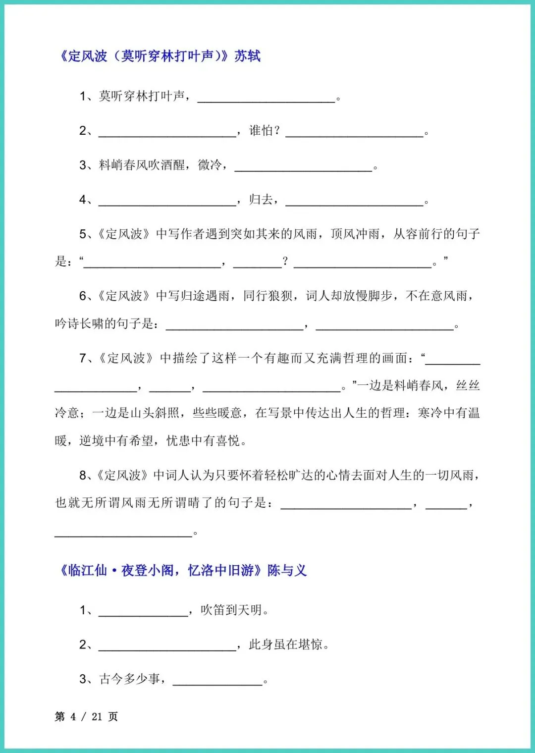2026春人教版九年级下册语文《古诗词理解性默写》新鲜出炉!21页浓缩中考必背34首古诗,按“原文—注释—情境默写—易错警示”四步编排,每题配“考点雷达”秒抓得分点,孩子背诗不再死记硬背,一眼锁定关键词,默写零丢分!现在就把电子版打出来,每天10分钟,古诗文稳拿满分!需要的家长速存,错过等一年!