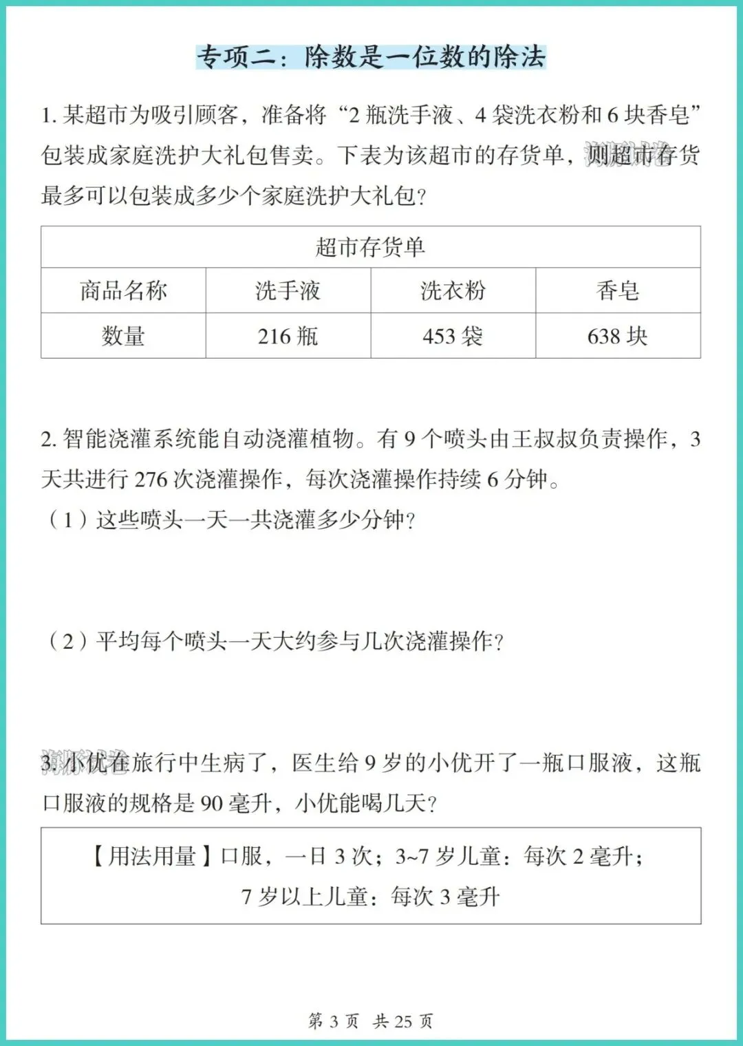 2026春人教版三年级下册数学《六大必练应用题合集》新鲜出炉!25页精选压轴题,专为三年级娃量身打造。六大模块:路程、买卖、倍数、面积、时间、统筹,一网打尽;每题配思路图解分步答案,帮孩子秒懂题眼,拒绝“一听就会、一做就废”。每天练两页,考试遇到应用题不再发怵,信心与分数同步飙升!想让孩子数学冲刺满分?赶紧打印出来,娃提分就靠它!